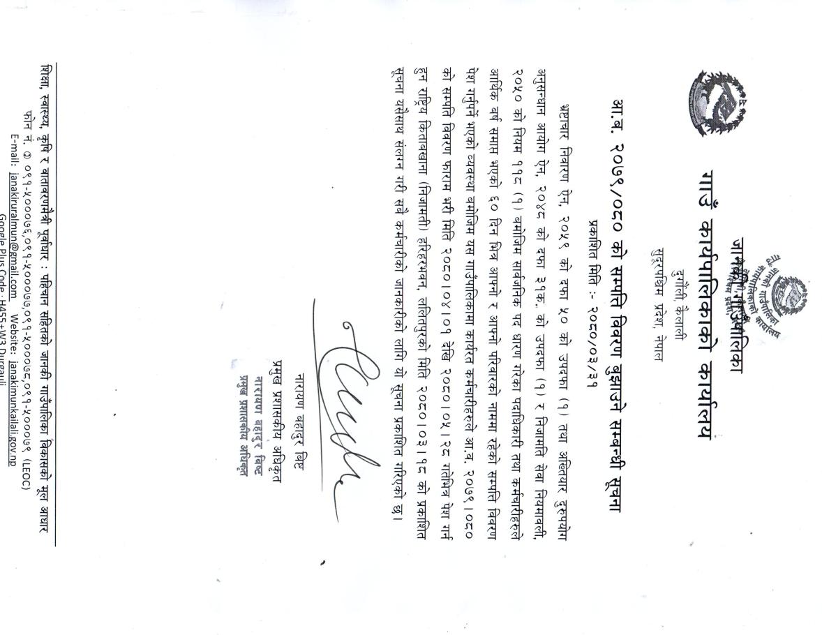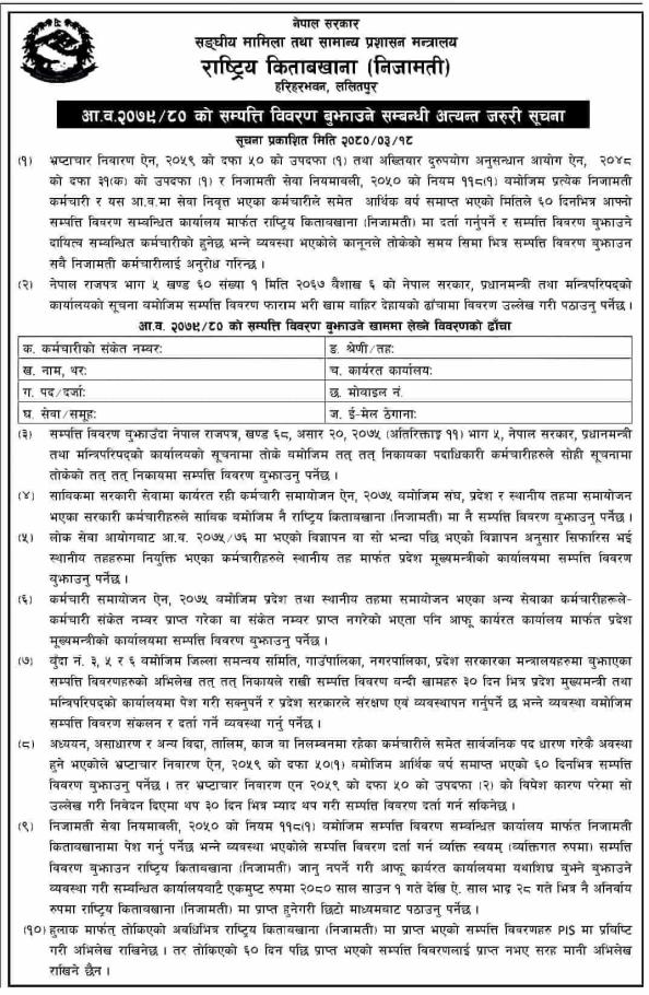 कर्मचारीहरुको आ.ब. २०७९/०८० को सम्पत्ति विवरणबुझाउने सम्बन्धी सूचना ।