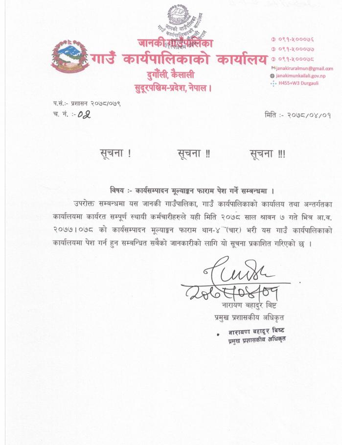 कार्यसम्पादन मुल्यांकन फाराम पेश गर्ने सम्बन्धी सूचना ।