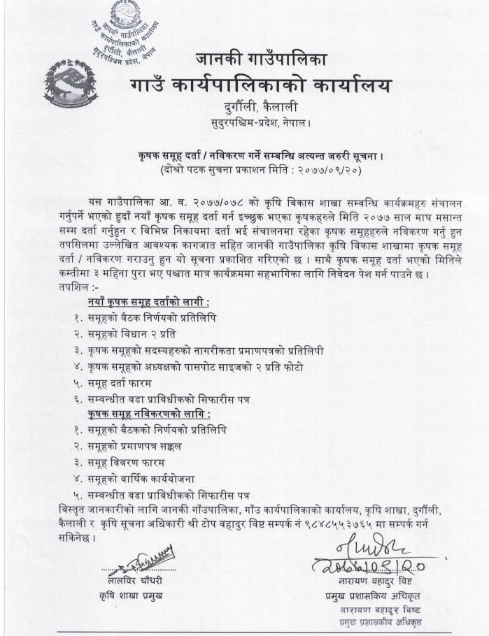 कृषक समूह दर्ता / नविकरण गर्ने सम्बन्धी अत्यन्त जरुरी सूचना l