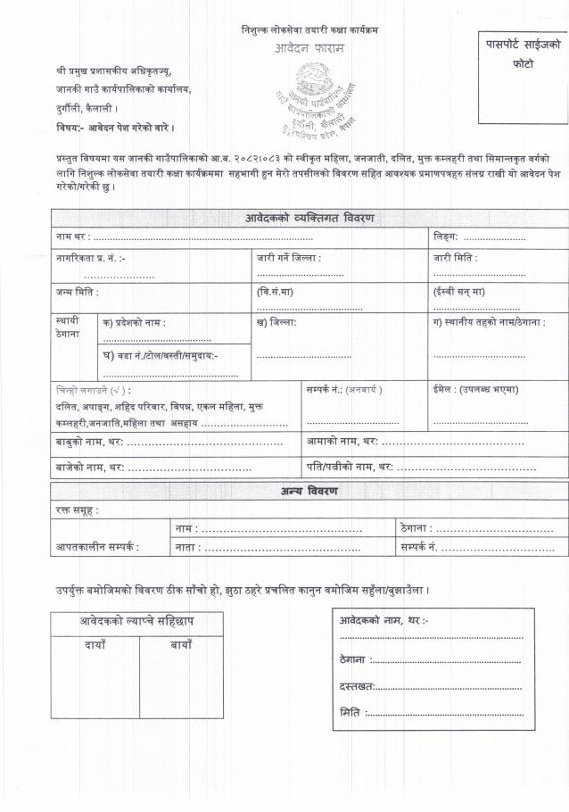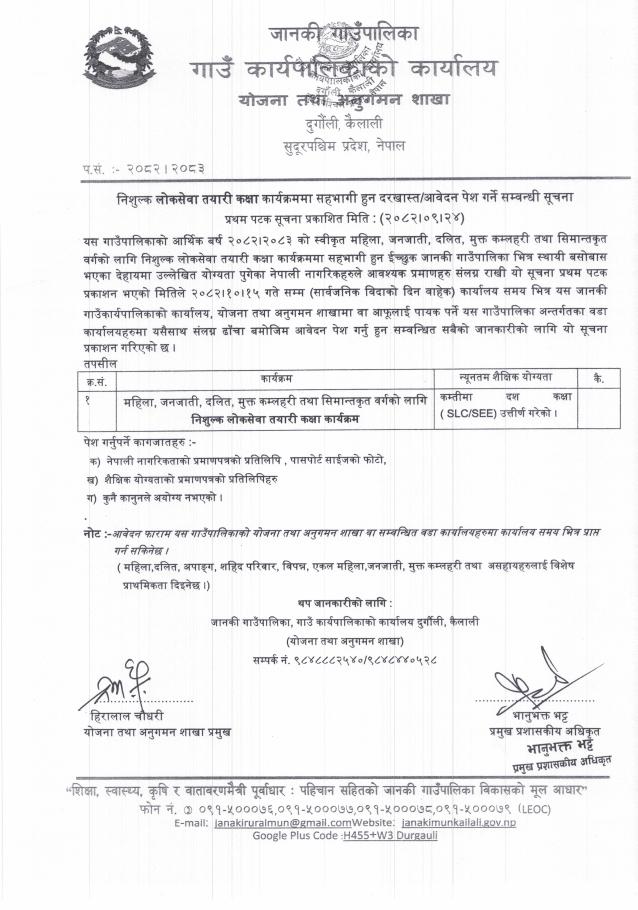निशुल्क लोकसेवा तयारी कक्षा कार्यक्रममा सहभागी हुन दरखास्त/आवेदन पेश गरें सम्बन्धी सूचना ।