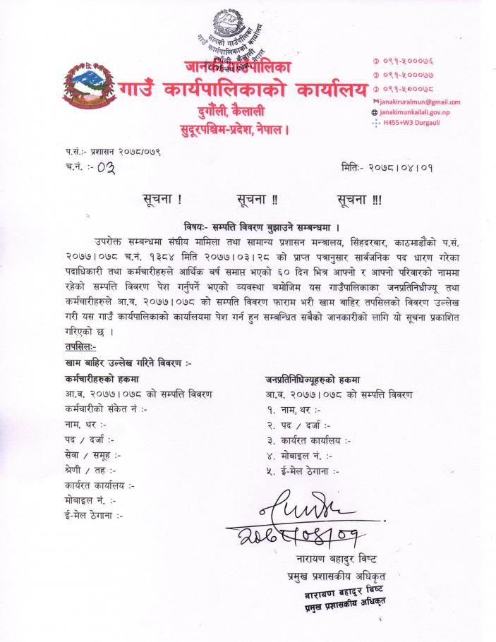 सम्पत्ति विवरण बुझाउने सम्बन्धी सूचना ।