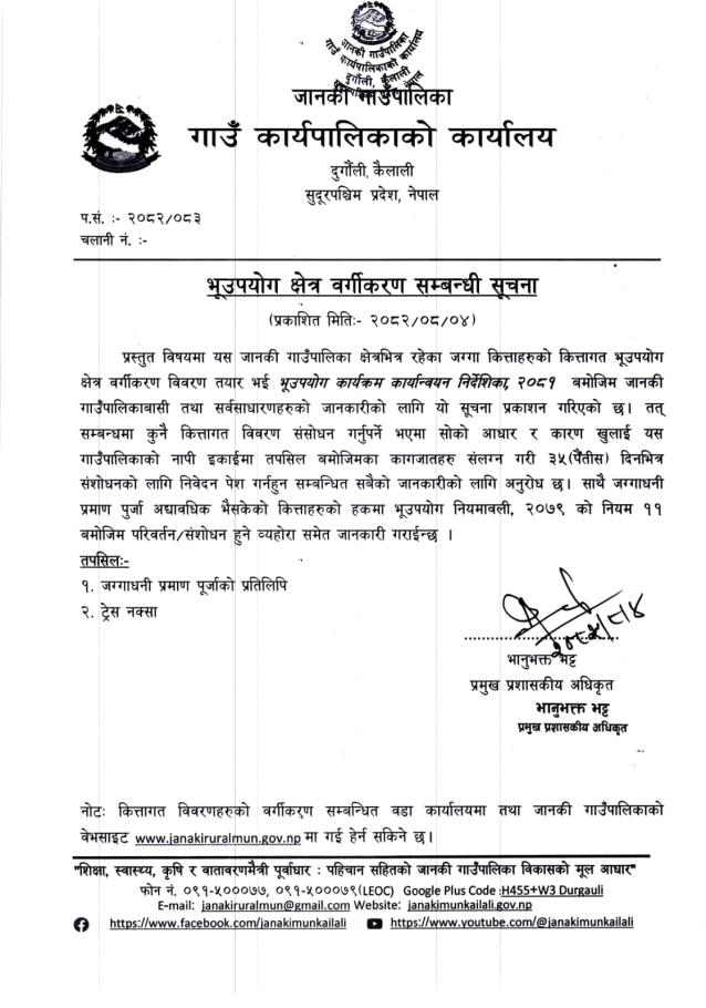 - आवश्यकता हेरी सरजमिन मुचुल्का गरिनेछ